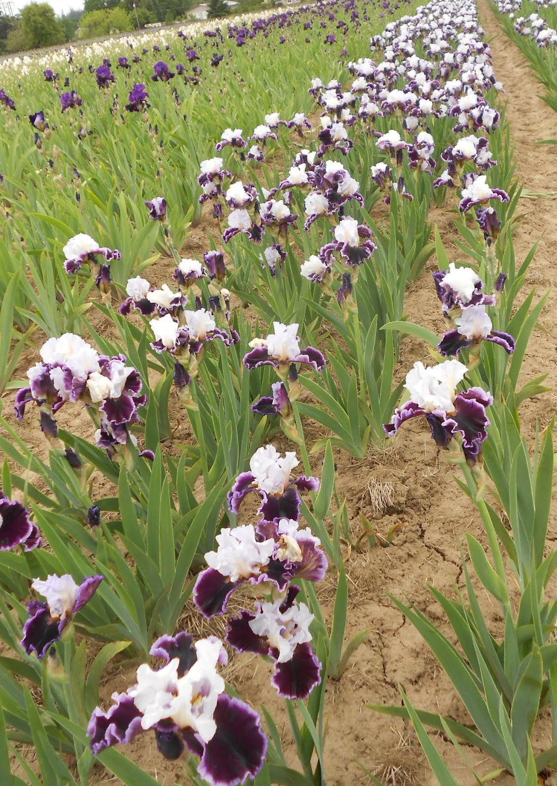 Grown for preparation of rhizomes for sale and shipping. Row upon row, beautiful irises as far as I can see.