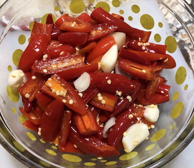 I have this down to a pretty good routine. Most frozen veggies come in one pound sizes, which is perfect. Except some stores reduced the size to 12 oz so that's kind of sneaky. I want to give Rufus something that I grow, with each meal. I figure zucchini is a good substitute for green beans, so I have about 10 packages of blanched zucchini slices in the freezer. Also pumpkin or squash seems like a good substitute for carrots, so I use home grown for those. But not at the same time as the zucchini. Today I had fresh green beans from my garden, so a pound of those went into the doggie meals. The apples are usually from my orchard.