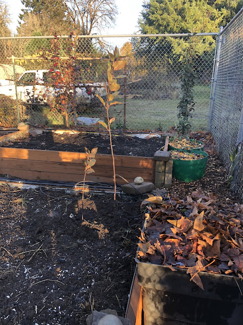 That fall (2021), I planted the two red leaf saplings in the mini orchard. This is the taller of those now.